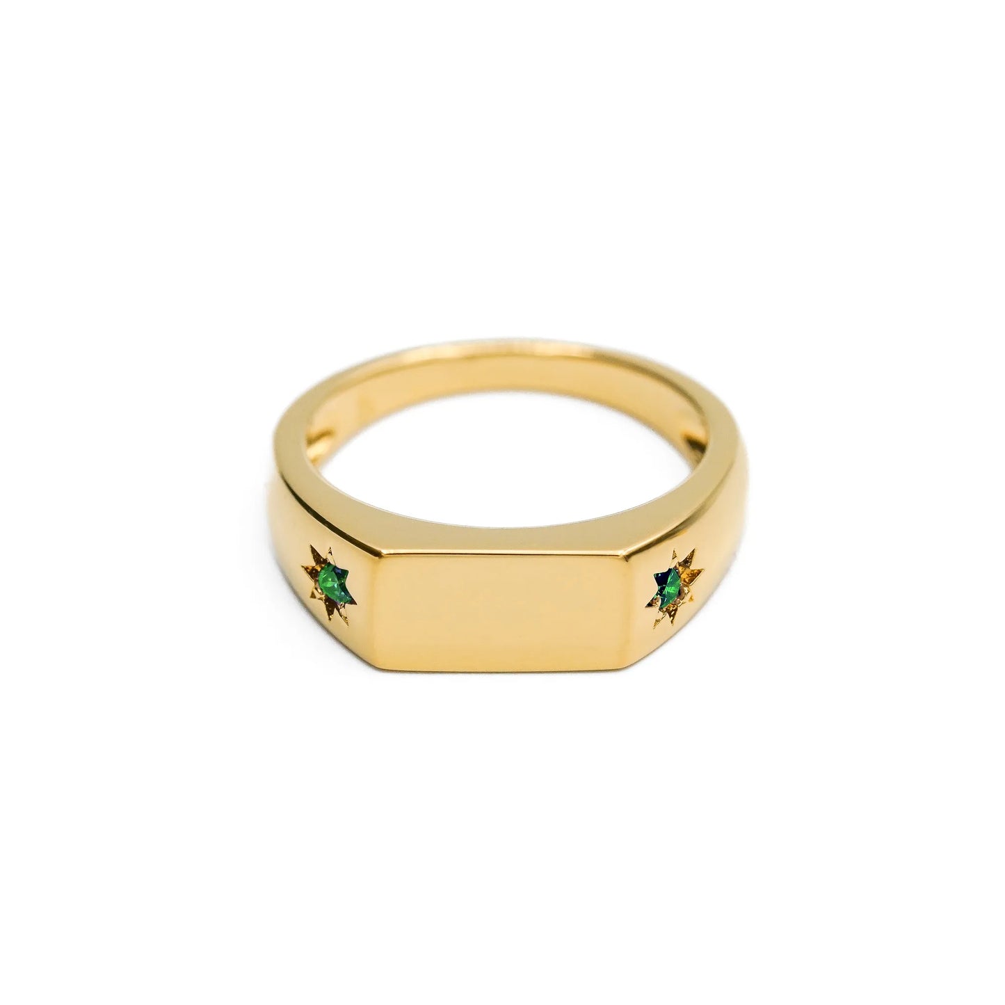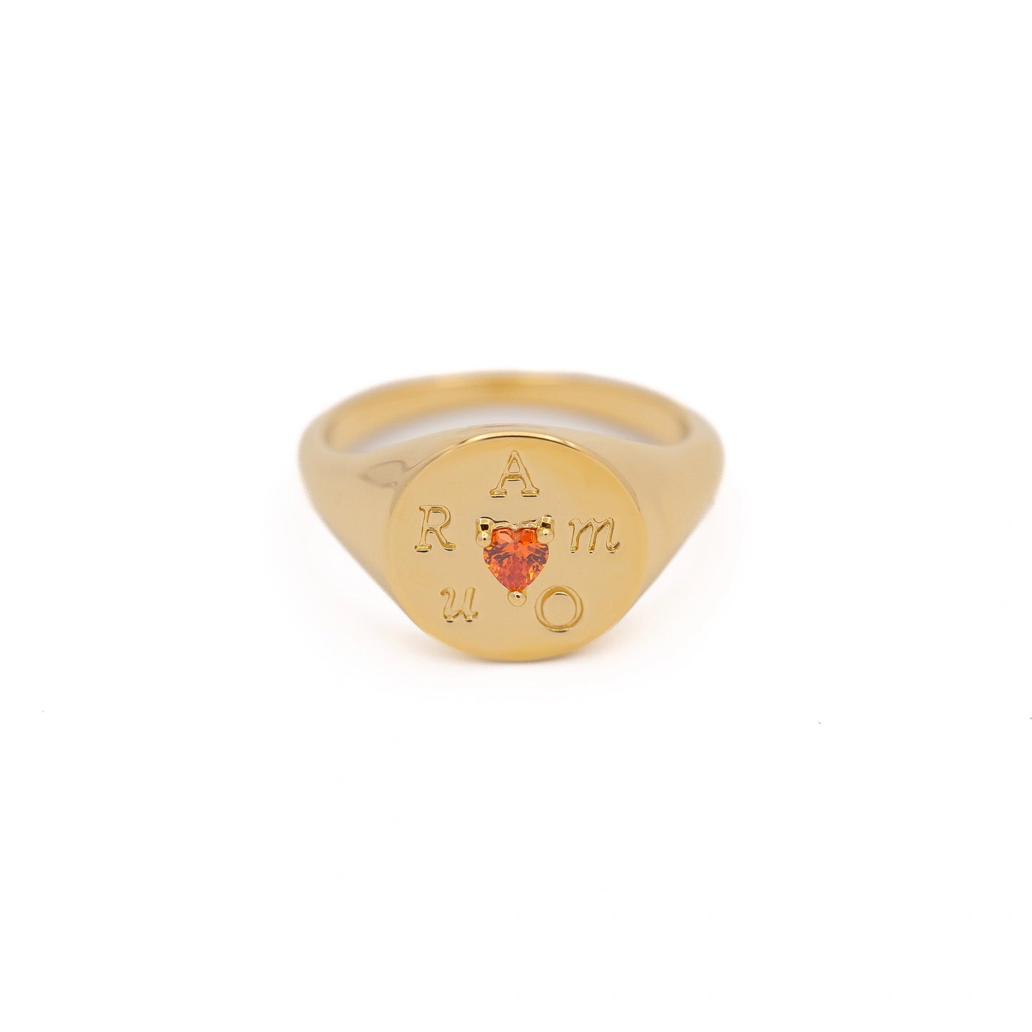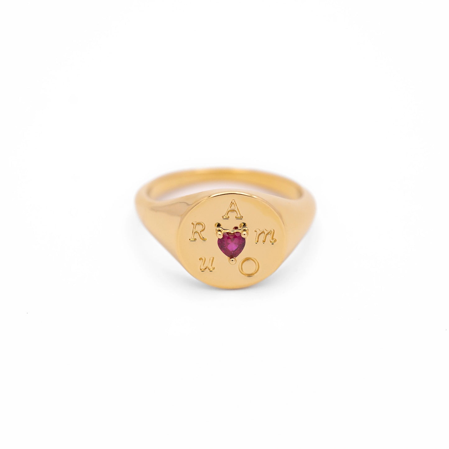 • bague en or ronde identité personnalisable en gravure debout sur fond blanc