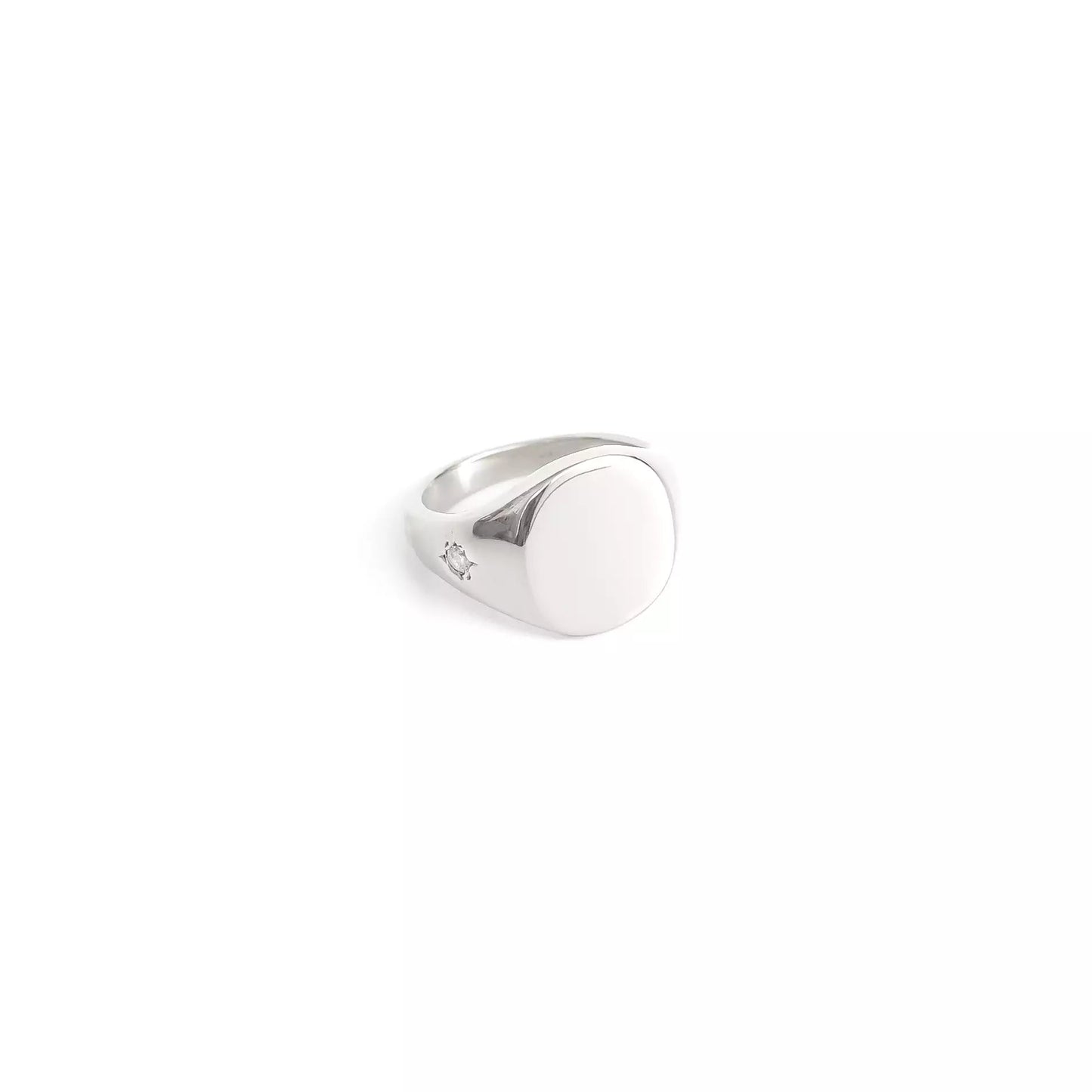 Bgaue femme toujours chevalière à gravure personnalisable en vermeil sertie de zircons couleur cristal sur les côtés