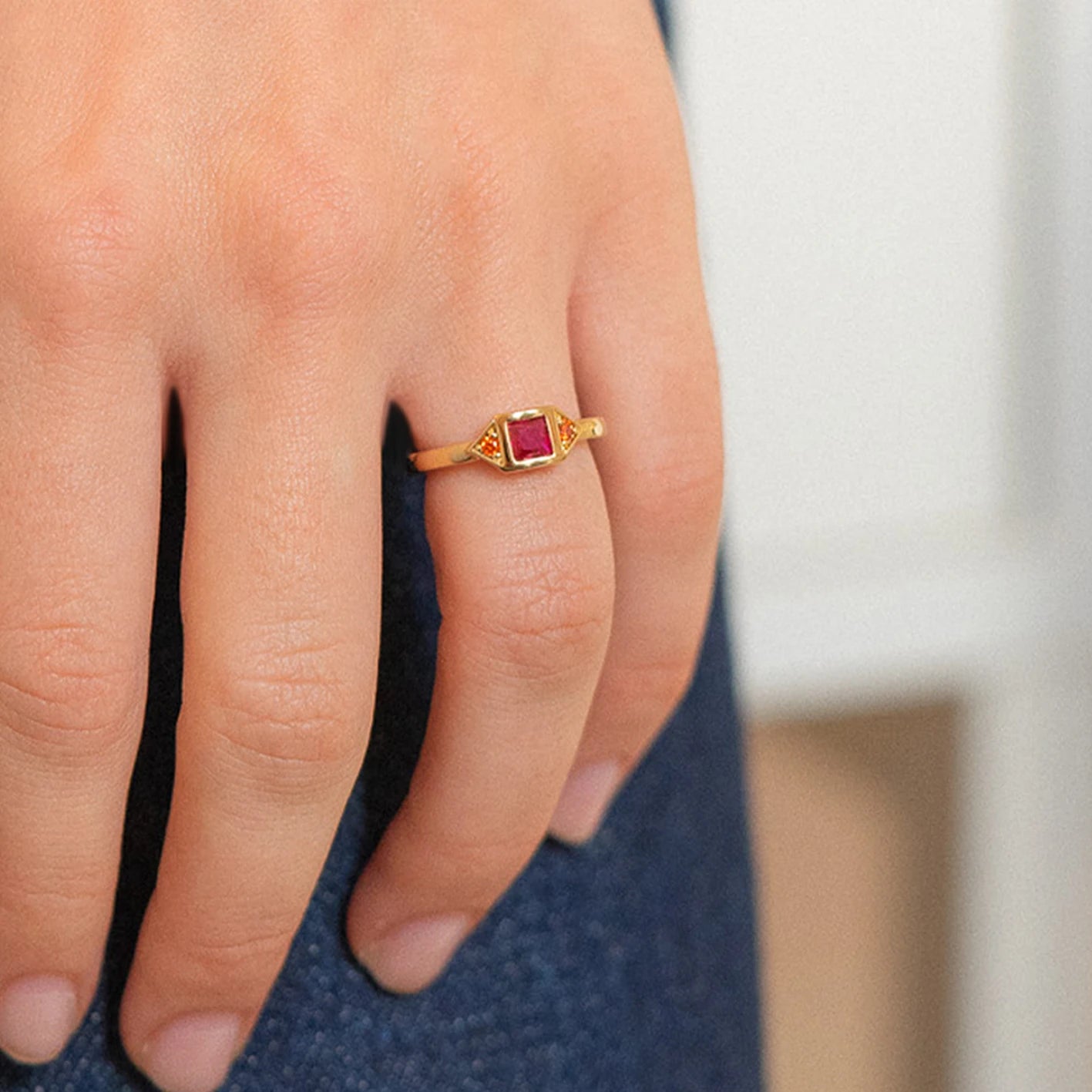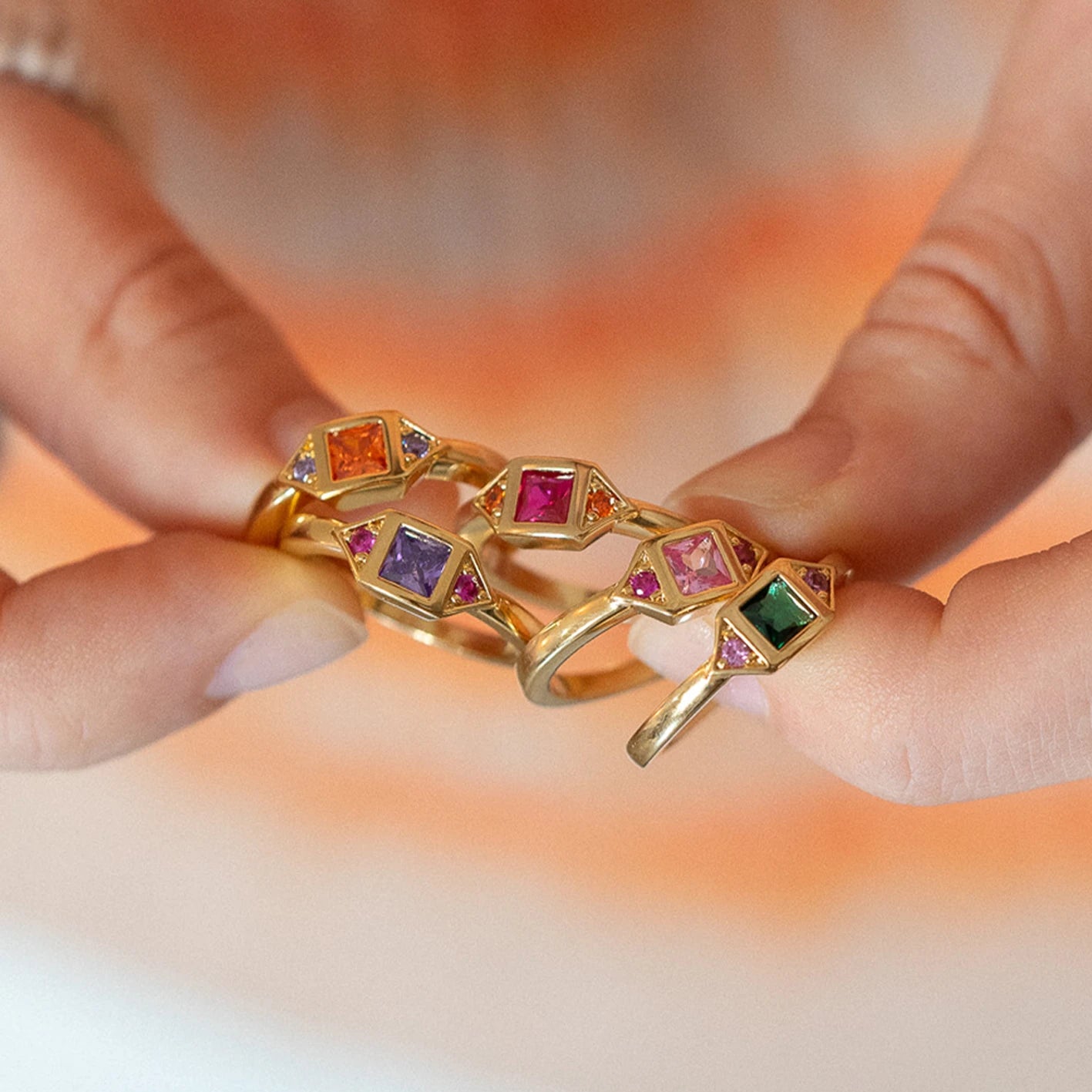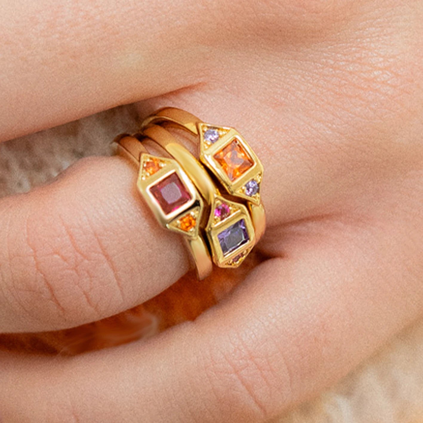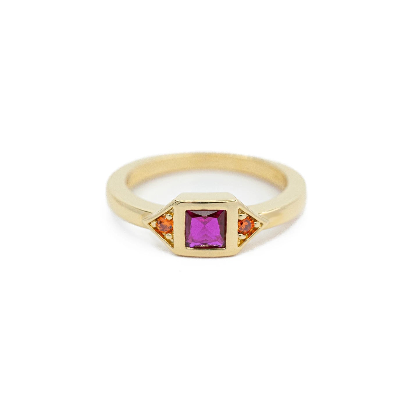 Bague Fuchsia et Mandarine en Plaqué Or