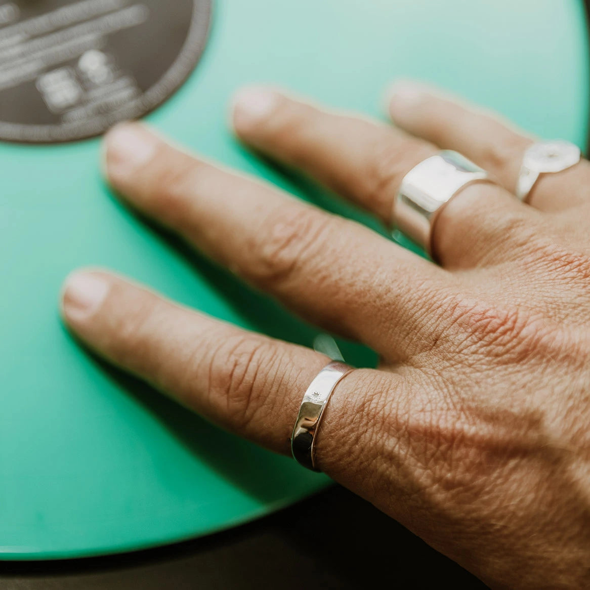 Bague pour homme en Argent 925 avec Turquoise sertie à l'intérieur.